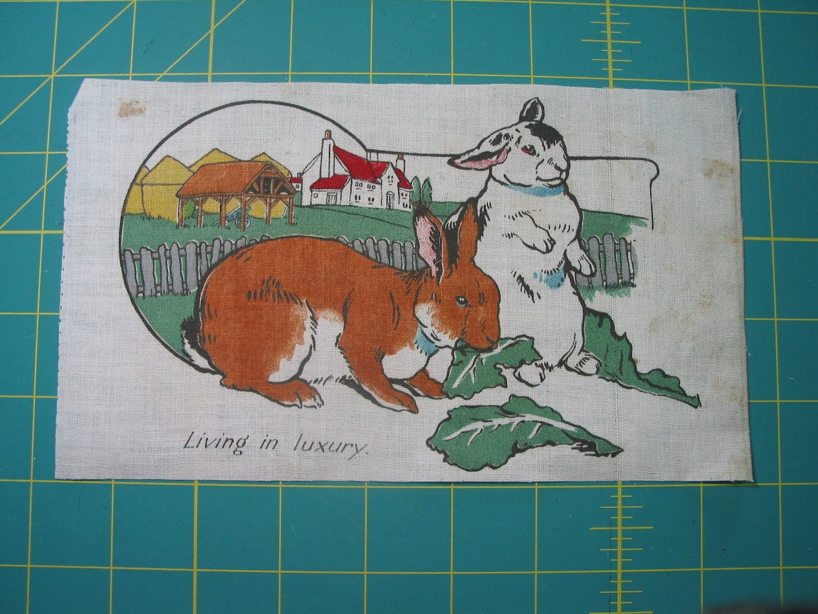 It's a page from a cloth children's book from yesteryear - I talked the shop owner into selling it to me, thinking that I would incorporate it into my book, and the idea was set that I would print children's story pictures onto fabric. Somehow.